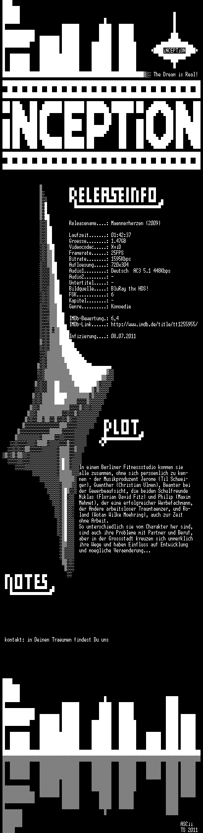 | FiLENAME: | Maennerherzen.2009.German.AC3.BDRip.XviD-iNCEPTiON.avi |