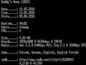 | FiLENAME: | Daddys.Home.Ein.Vater.zu.viel.2015.German.DL.1080p.BluRay.x264-CiNEViSiON.mkv |