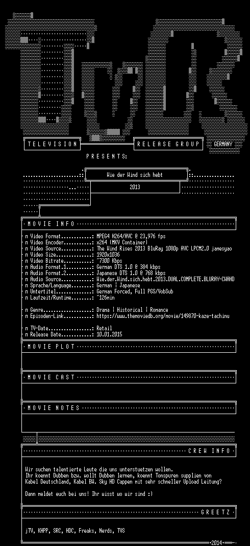 | FiLENAME: | Wie.der.Wind.sich.hebt.GERMAN.DL.DTS.ANiME.BDRiP.1080p.WS.x264-TvR.mkv |