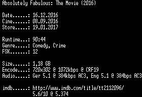 | FiLENAME: | Absolutely.Fabulous.Der.Film.German.2016.DL.BDRiP.x264-CiNEViSiON.mkv |