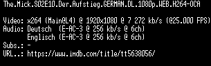 | FiLENAME: | The.Mick.S02E10.Der.Aufstieg.GERMAN.DL.1080p.WEB.H264-OCA.mkv |