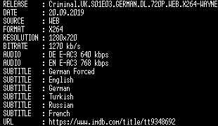 | FiLENAME: | Criminal.UK.S01E03.GERMAN.DL.720P.WEB.X264-WAYNE.mkv |