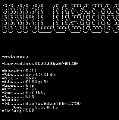| FiLENAME: | London.Heist.German.2017.AC3.BDRip.x264-iNKLUSiON.mkv |