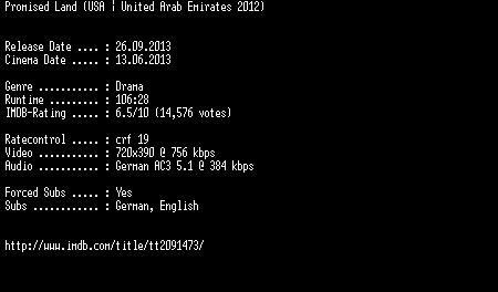 | FiLENAME: | Promised.Land.German.BDRiP.x264-EXQUiSiTE.mkv |
