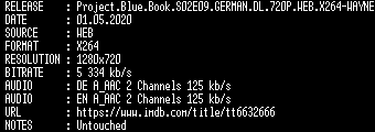 | FiLENAME: | Project.Blue.Book.S02E09.GERMAN.DL.720P.WEB.X264-WAYNE.mkv |