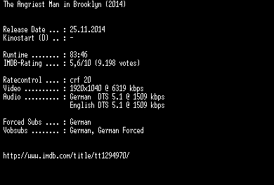 | FiLENAME: | The.Angriest.Man.in.Brooklyn.2014.German.DL.1080p.BluRay.x264-EXQUiSiTE.mkv |
