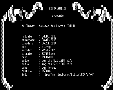 | FiLENAME: | Mr.Turner.Meister.des.Lichts.2014.German.DL.1080p.BluRay.x264-CONTRiBUTiON.mkv |