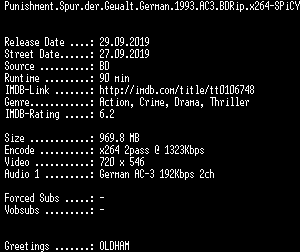 | FiLENAME: | Punishment.Spur.der.Gewalt.German.1993.AC3.BDRip.x264-SPiCY.mkv |