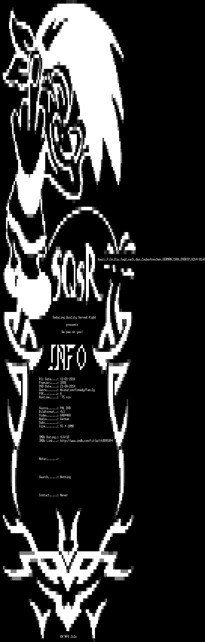 | FiLENAME: | Wauzi.Film.Die.Jagd.nach.dem.Zauberknochen.GERMAN.1988.DVDRIP.X264-SQsR.mkv |