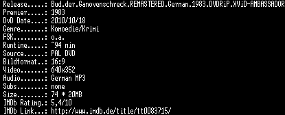 | FiLENAME: | Bud.der.Ganovenschreck.REMASTERED.German.1983.DVDRiP.XViD-AMBASSADOR.avi |