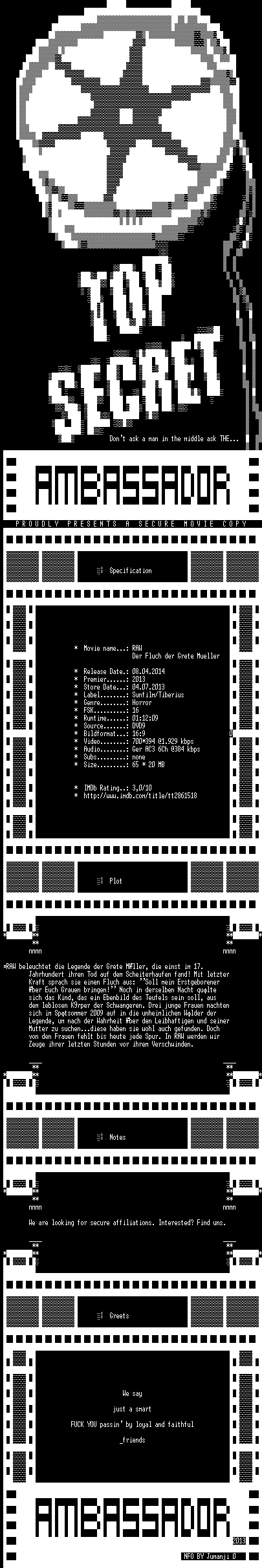 | FiLENAME: | RAW.Der.Fluch.der.Grete.Mueller.German.2013.DVDRiP.x264-AMBASSADOR.mkv |