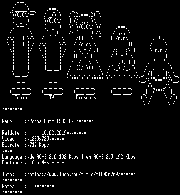 | FiLENAME: | Peppa.Wutz.S02E07.German.DL.720p.WEBHD.x264-JuniorTV.mkv |