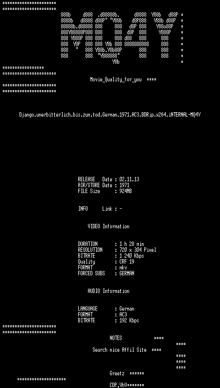 | FiLENAME: | Django.unerbitterlich.bis.zum.tod.German.1971.AC3.BDRip.x264.iNTERNAL-MQ4Y.mkv |