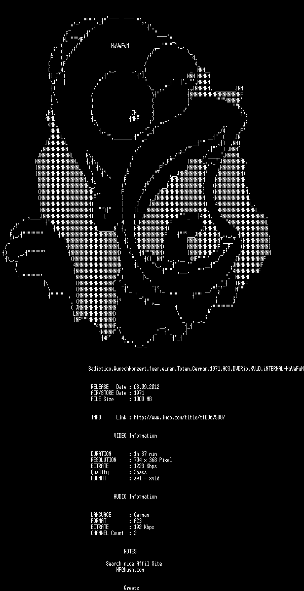 | FiLENAME: | Sadistico.Wunschkonzert.fuer.einen.Toten.German.1971.AC3.DVDRip.XViD.iNTERNAL-HaVeFuN.avi |