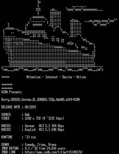 | FiLENAME: | Barry.S02E01.German.DL.DUBBED.720p.WebHD.x264-AIDA.mkv |