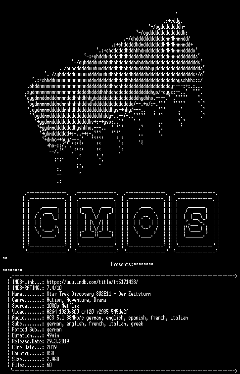 | FiLENAME: | Star.Trek.Discovery.S02E11.Der.Zeitsturm.GERMAN.ML.1080p.webHD.x264.iNTERNAL-CMOS.mkv |