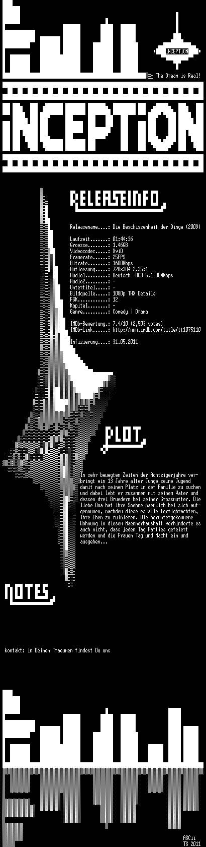 | FiLENAME: | Die.Beschissenheit.der.Dinge.2009.German.AC3.HDRip.XviD-iNCEPTiON.avi |