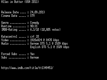 | FiLENAME: | Alles.in.Butter.2011.German.DL.1080p.BluRay.x264-EXQUiSiTE.mkv |