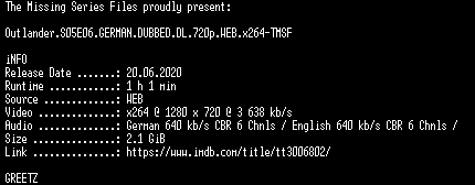 | FiLENAME: | Outlander.S05E06.GERMAN.DUBBED.DL.720p.WEB.x264-TMSF.mkv |