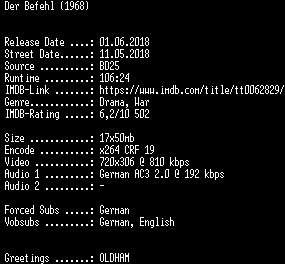 | FiLENAME: | Der.Befehl.German.REMASTERED.1968.AC3.BDRip.x264-SPiCY.mkv |