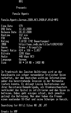 | FiLENAME: | Female Agents (2008) [GER-AC3 WS DVD] CD2.avi |