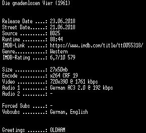 | FiLENAME: | Die.gnadenlosen.Vier.German.REMASTERED.1961.AC3.BDRip.x264-SPiCY.mkv |