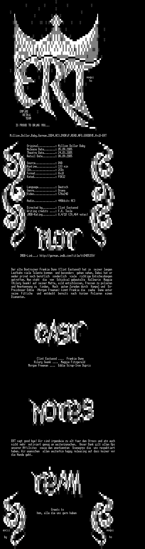 | FiLENAME: | Million Dollar Baby (2004) [GER-AC3 WS DVD] CD1.avi |