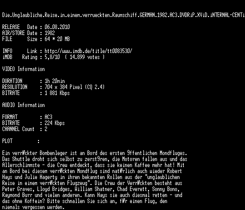 | FiLENAME: | Die.Unglaubliche.Reise.in.einem.verrueckten.Raumschiff.GERMAN.1982.AC3.DVDRiP.XViD.iNTERNAL-CENTi.avi |