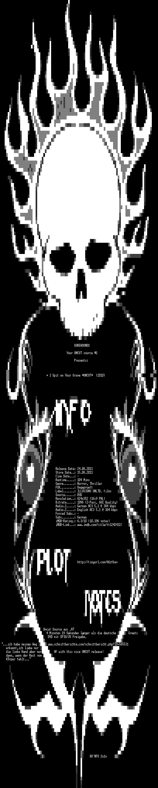 | FiLENAME: | I.Spit.On.Your.Grave.UNCUT.German.2010.AC3.DL.DVDRiP.XViD-GOREHOUNDS.avi |