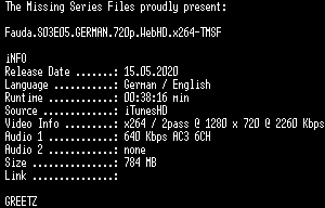 | FiLENAME: | Fauda.S03E05.GERMAN.720p.WebHD.x264-TMSF.mkv |