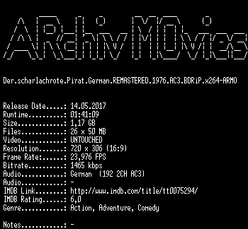 | FiLENAME: | Der.scharlachrote.Pirat.German.REMASTERED.1976.AC3.BDRiP.x264-ARMO.mkv |