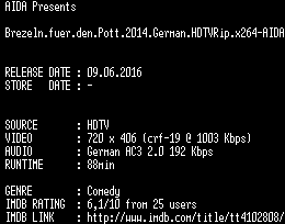 | FiLENAME: | Brezeln.fuer.den.Pott.2014.German.HDTVRip.x264-AIDA.mkv |
