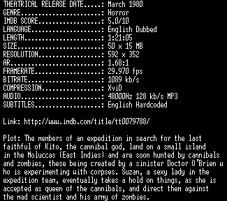 | FiLENAME: | Zombie.Holocaust.Uncut.1980.DVDRip.XviD-RPS.avi |