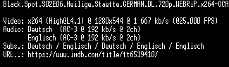 | FiLENAME: | Black.Spot.S02E06.Heilige.Staette.GERMAN.DL.720p.WEBRiP.x264-OCA.mkv |