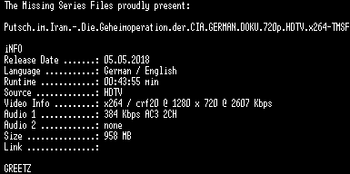| FiLENAME: | Putsch.im.Iran.-.Die.Geheimoperation.der.CIA.GERMAN.DOKU.720p.HDTV.x264-TMSF.mkv |