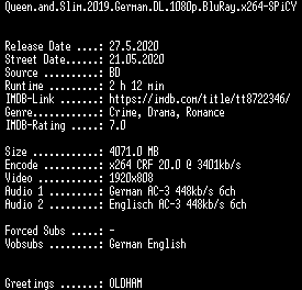 | FiLENAME: | Queen.and.Slim.2019.German.DL.1080p.BluRay.x264-SPiCY.mkv |