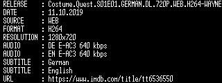 | FiLENAME: | Costume.Quest.S01E01.GERMAN.DL.720P.WEB.H264-WAYNE.mkv |