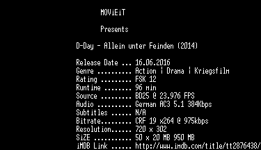| FiLENAME: | D.Day.Allein.unter.Feinden.German.2014.AC3.BDRip.x264-MOViEiT.mkv |