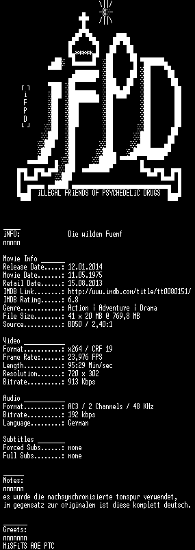 | FiLENAME: | Die.wilden.Fuenf.UNCUT.German.1974.AC3.BDRiP.x264-iFPD.mkv |