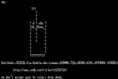 | FiLENAME: | Bad.Banks.S01E06.Die.Hoehle.des.Loewen.GERMAN.720p.WEBHD.X264.iNTERNAL-SCHORLE.mkv |