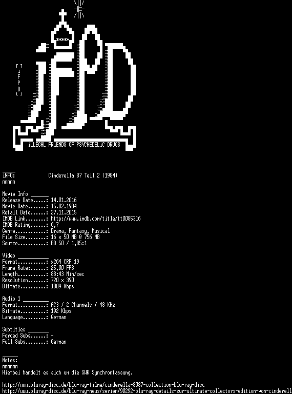 | FiLENAME: | Cinderella.87.Teil.2.German.1984.AC3.BDRiP.x264-iFPD.mkv |