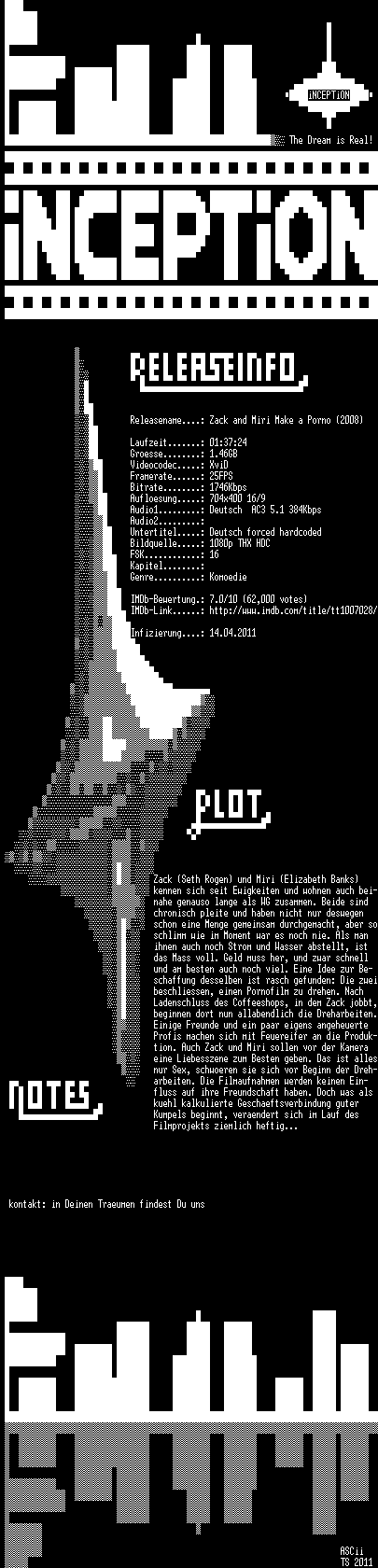 | FiLENAME: | Zack.and.Miri.Make.a.Porno.2008.German.AC3.HDRip.XviD.iNCEPTiON.avi |