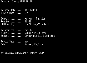| FiLENAME: | Curse.of.Chucky.UNRATED.German.2013.BDRiP.x264-EXQUiSiTE.mkv |