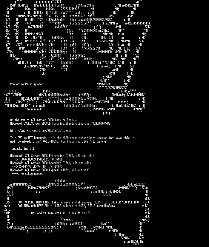 | FiLENAME: | Microsoft SQL Server 2008 Enterprise Standard Express MSDN DVD-CRBS.iso |