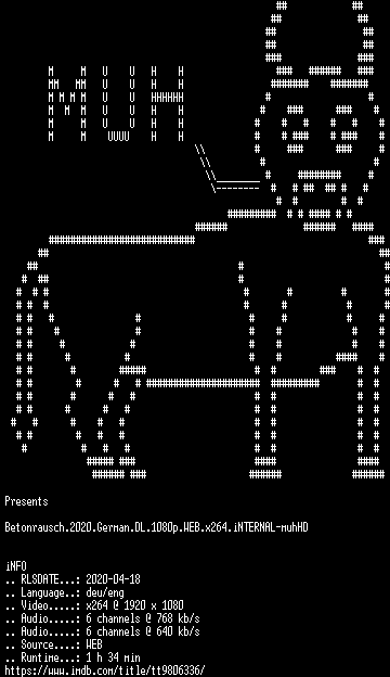 | FiLENAME: | Betonrausch.2020.German.DL.1080p.WEB.x264.iNTERNAL-muhHD.mkv |