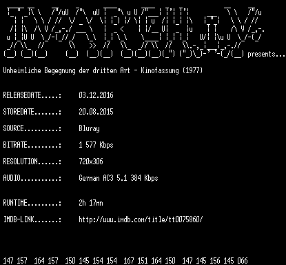 | FiLENAME: | Unheimliche.Begegnung.der.dritten.Art.Kinofassung.1977.German.BDRip.x264.RERiP-TVARCHiV.mkv |