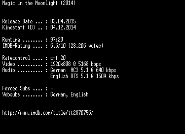| FiLENAME: | Magic.in.the.Moonlight.German.DL.1080p.BluRay.x264-EXQUiSiTE.mkv |