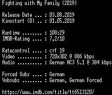 | FiLENAME: | Fighting.with.My.Family.German.2019.AC3.BDRip.x264-COiNCiDENCE.mkv |