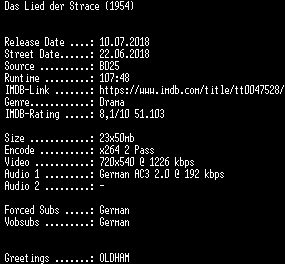 | FiLENAME: | Das.Lied.der.Strasse.German.REMASTERED.1954.AC3.BDRip.x264-SPiCY.mkv |