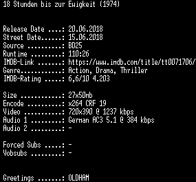 | FiLENAME: | 18.Stunden.bis.zur.Ewigkeit.German.REMASTERED.1974.AC3.BDRip.x264-SPiCY.mkv |